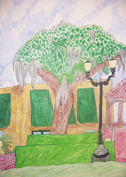 "I see God by the peacock. He was feeding it lots of food and asking it, "Are you happy?" - Victoria Souza, age 8. "Who can adequately describe God's work? The children." Linda Sullivan, mother, age 40.